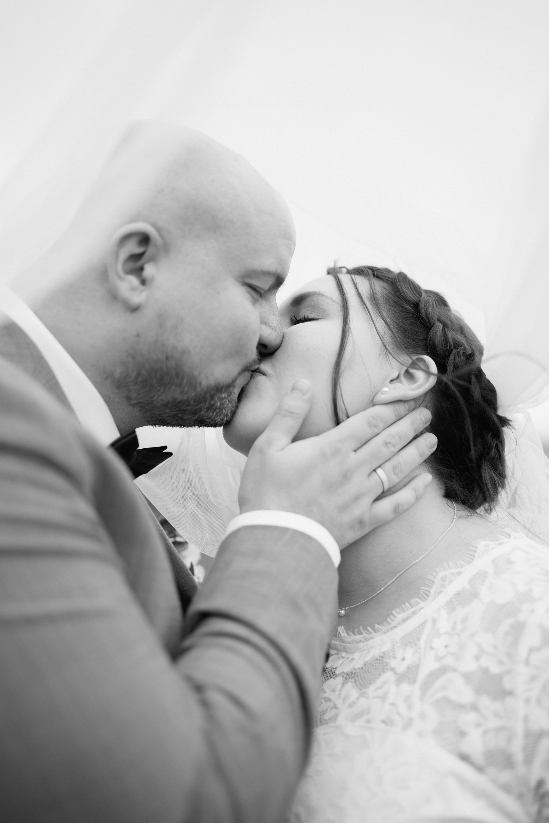 Am Hochzeitstag selbst halte ich mich nicht im Mittelpunkt – aber ich bin da, wenn es darauf ankommt. Ich beobachte, bewege mich mit dem Geschehen und halte fest, was zwischen den großen Momenten passiert. Ohne Druck. Ohne starre Anweisungen. Dafür mit einem sicheren Blick für Licht, Atmosphäre und Nähe. So entsteht eine Reportage, die sich nicht inszeniert anfühlt, sondern echt.